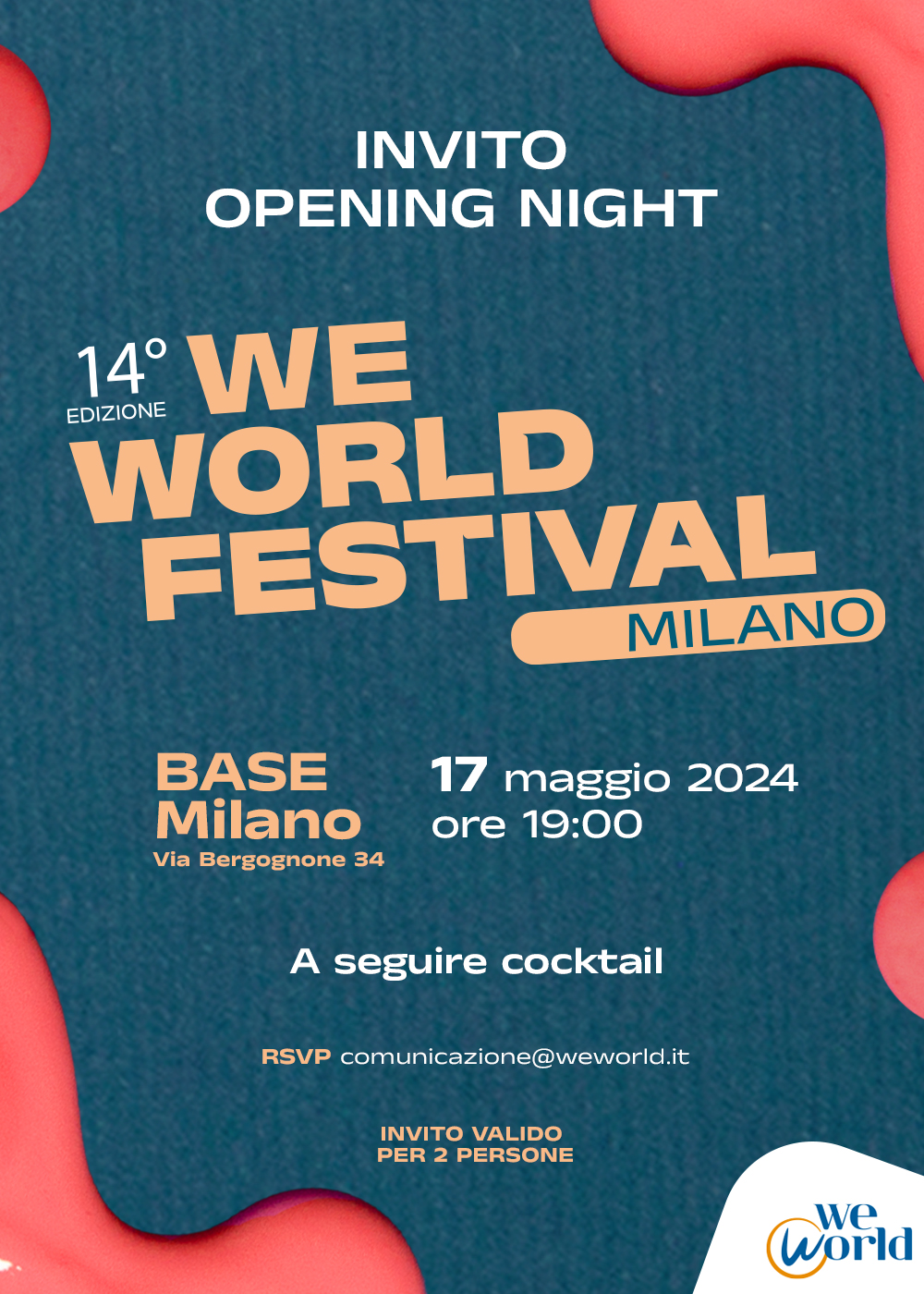 Il WeWorld Festival si terrà dal 17 al 19 maggio 2024 presso BASE Milano, via Borgognone 34.