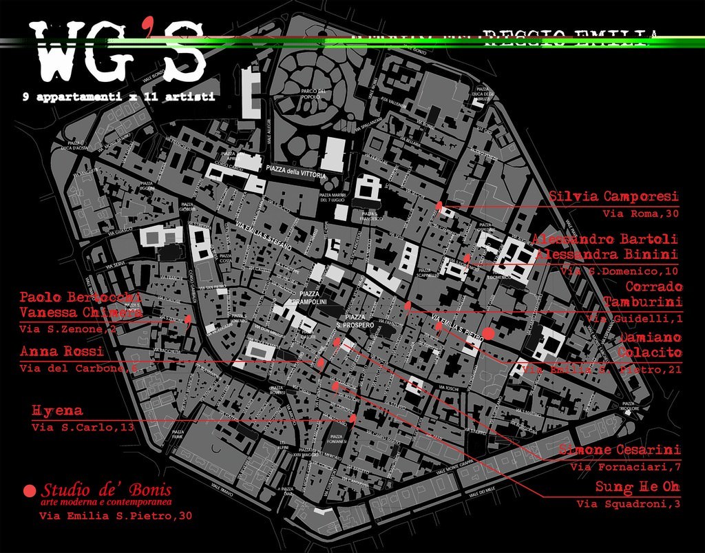 Nei pomeriggi di sabato 30 settembre e sabato 7 ottobre gli “ospiti”,con l’ausilio di una cartina, potranno spostarsi autonomamente per le vie del centro storico alla ricerca degli appartamenti da visitare; lo Studio de’ Bonis (Via Emilia S. Pietro, 30 - Reggio Emilia) costituirà il punto di incontro in cui reperire cartine e informazioni.
