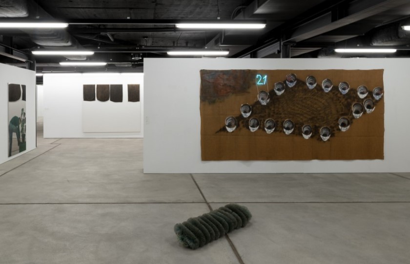 noi osservatori: l’opera su tela Samurai Tree 17H (2008) e le sculture in poliuretano espanso Tre