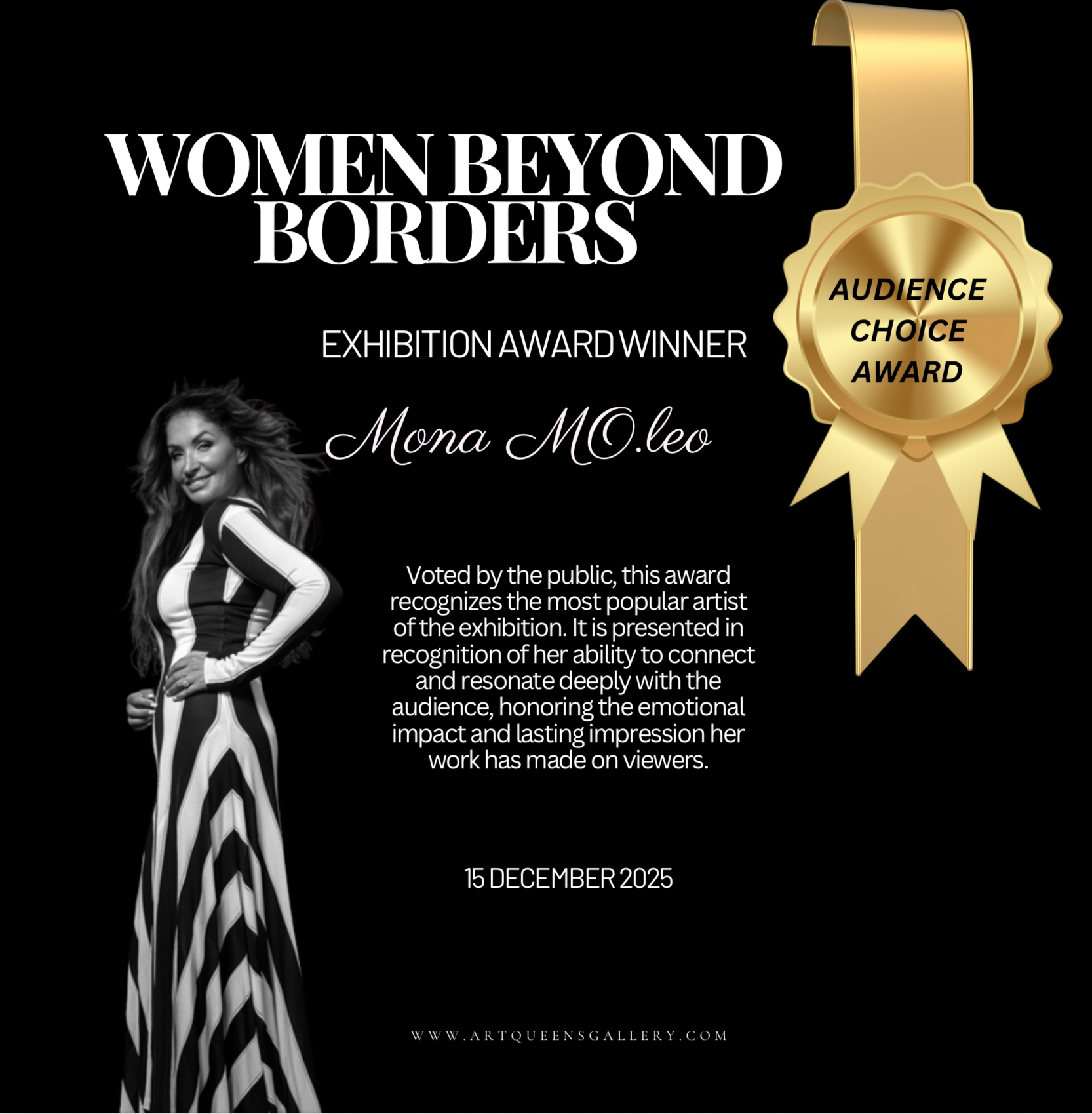 The strong public response culminated in Mona MO.leo receiving the Audience Choice Award, voted by exhibition visitors in recognition of the emotional impact and lasting impression of her work.