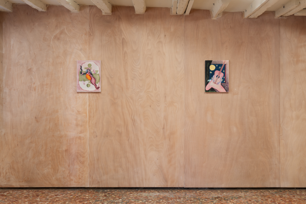 Stevi’s paintings seem to collect all the spectral binaries. They depict objects, persons and beings that are present, but absent; absent, but promising to return; undecidable; symbolic, but ambiguous in their references. A tour through her exhibition feels like sleep-walking: dream-like sequences of almost-familiar figures and ine”able emotional states, smoothly blending into one another, triggering obscure memories of joy and sorrow alike.