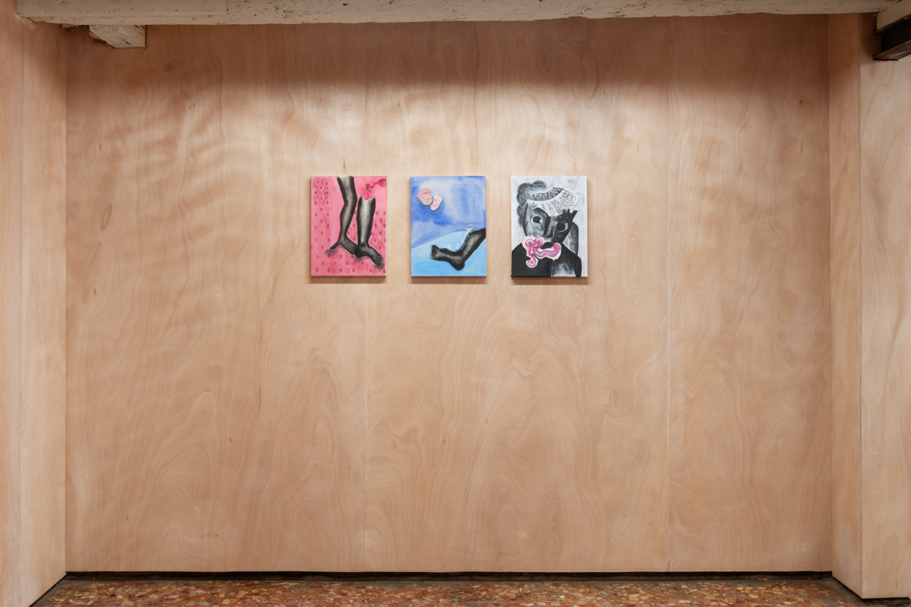 “Why am I not a ghost,” asks Sofia Stevi in one of the titles of her new paintings. This question is formulated in a manner that might remind us of predictive text feature in a web browser search bar: “Why am I not a g... - good person? Girly girl? Good mom? Getting a period?”. But Stevi’s inquiry is perplexing. Does she wish to be a specter? Does she feel a necessity to prove she is not one?