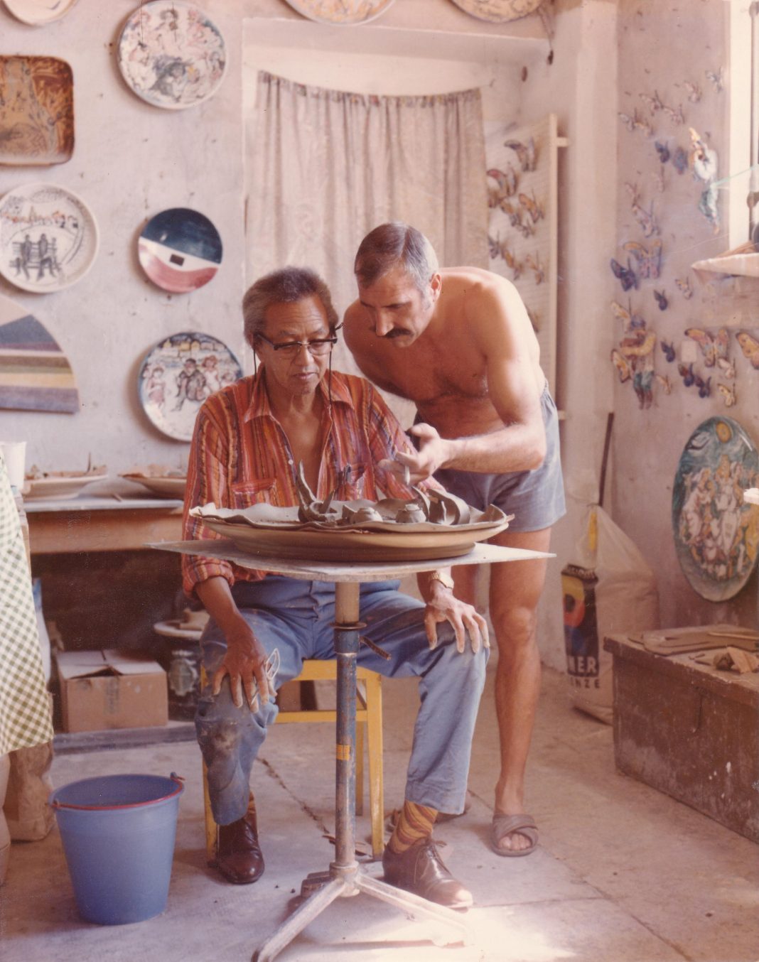 Questi sono allora ‘i maghi del mare’: artisti – Lam in testa – che ad Albisola hanno rivolto la propria attenzione a figure totemiche, a esseri zoomorfi e antropomorfi, alle forze primordiali della materia e a gesti essenziali che portano segni, buchi e graffi su di essa. E maghi sono anche i maestri artigiani albisolesi, capaci all’epoca di incredibili effetti materici e coloristici, e che ancora oggi custodiscono e tramandano tecniche necessarie a plasmare, cuocere, decorare l’argilla.