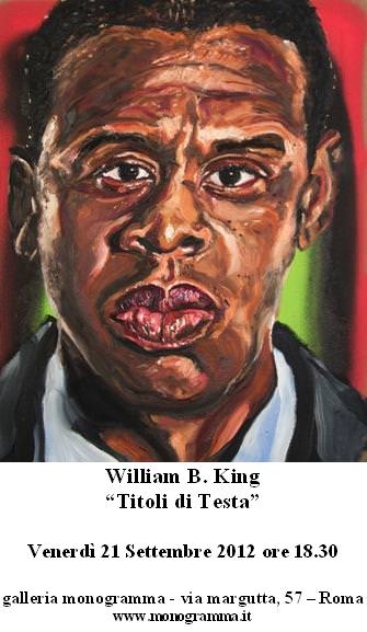 “… Il gesto fluido come atto di continuità della neo-figurazione di William B King, è da inquadrare in un contesto non privato della sua originale appendice culturale pop ma esteso come fosse una sorta di laboratorio e osservatorio oggettivo e mondiale. In un confronto costante tra la memoria e il suo assorbimento, l’artista libera dalle speculazioni estetiche i dieci soggetti scelti e il suo modo di dipingere lo rende affine a una generazione di nuovi figurativi in bilico fra una transavanguardia approdata a New York negli anni ’80 e l’art brut dalla la risonanza evocativa . la posa statica delle figure, conduce a una introspezione psicoanalitica. .…”