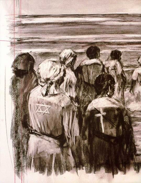 In Tide Table l’acqua diventa espressione del pericolo dell’amnesia insito negli avvenimenti storici più drammatici. Dalla specificità della situazione sudafricana, Kentridge sposta l’attenzione al dramma quotidiano dell’uomo contemporaneo coinvolgendo spettatori di origini diverse, come dimostra la presenza della croce o della stella di Davide sugli abiti di donne e di uomini che avanzano verso il mare in una sorta di nuovo esodo.