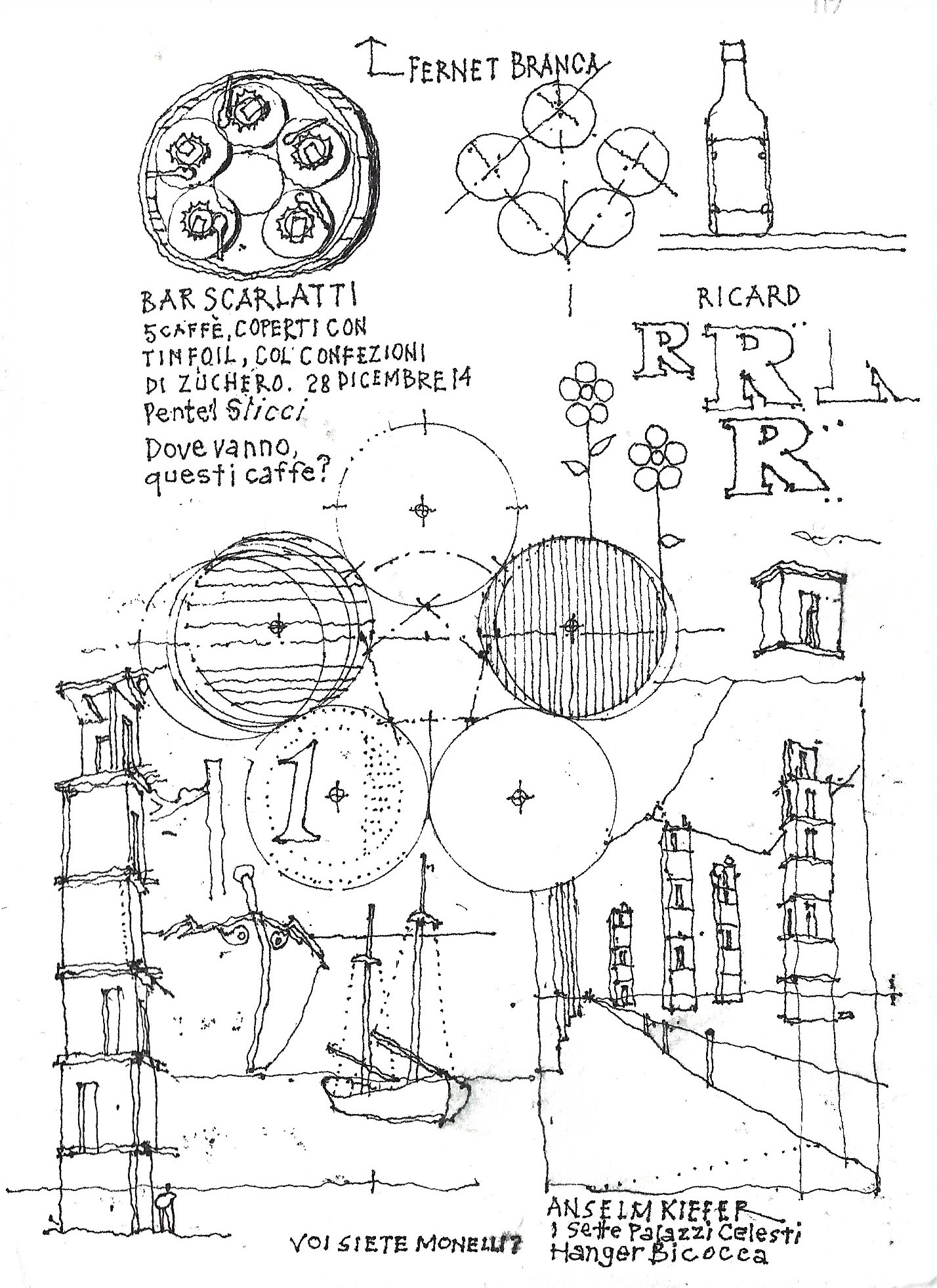 Prima mostra europea dell’architetto e illustratore californiano William Magruder, i cui disegni di architettura urbana sono pervasi di storie, visioni e micronarrazioni sincroniche: non semplici schizzi architettonici, ma vere e proprie mappe mentali delle divagazioni “per analogia” dell’autore.