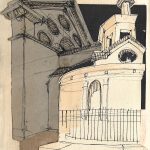 Living in Hoboken, New Jersey, when it was hit by Hurricane “Sandy”, he became interested in the romantic and utopian idea of constructing massive masonry walls along the Hoboken riverfront inspired by the 16th century city walls of Lucca. For this project both freehand line drawings and 3D digital illustrations were executed. These works are an exploration of the ideas of protection, permanence, and the ideal marriage of landscape with architecture. They are both an exercise in fantasy and a rigorous project of utopian architecture. This work was exhibited at the Hoboken Historical Museum and then published as “The Walls of Hoboken”.