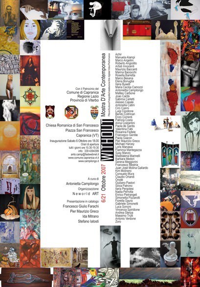 Without, un urlo "muto", ma non per questo meno potente. L'urlo di un'arte che afferma il proprio diritto ad essere ed a confrontarsi provocatoriamente senza titolo e perfino senza le consuete indicazioni che sempre accompagnano l'opera, ad eccezione del nome dell'artista. Non rimandare ad altro da sé, ma lasciare che le forme, i colori, i materiali, i segni si differenzino o si richiamino l'un l'altro per imporre l'opera come presenza, invece, affatto muta.