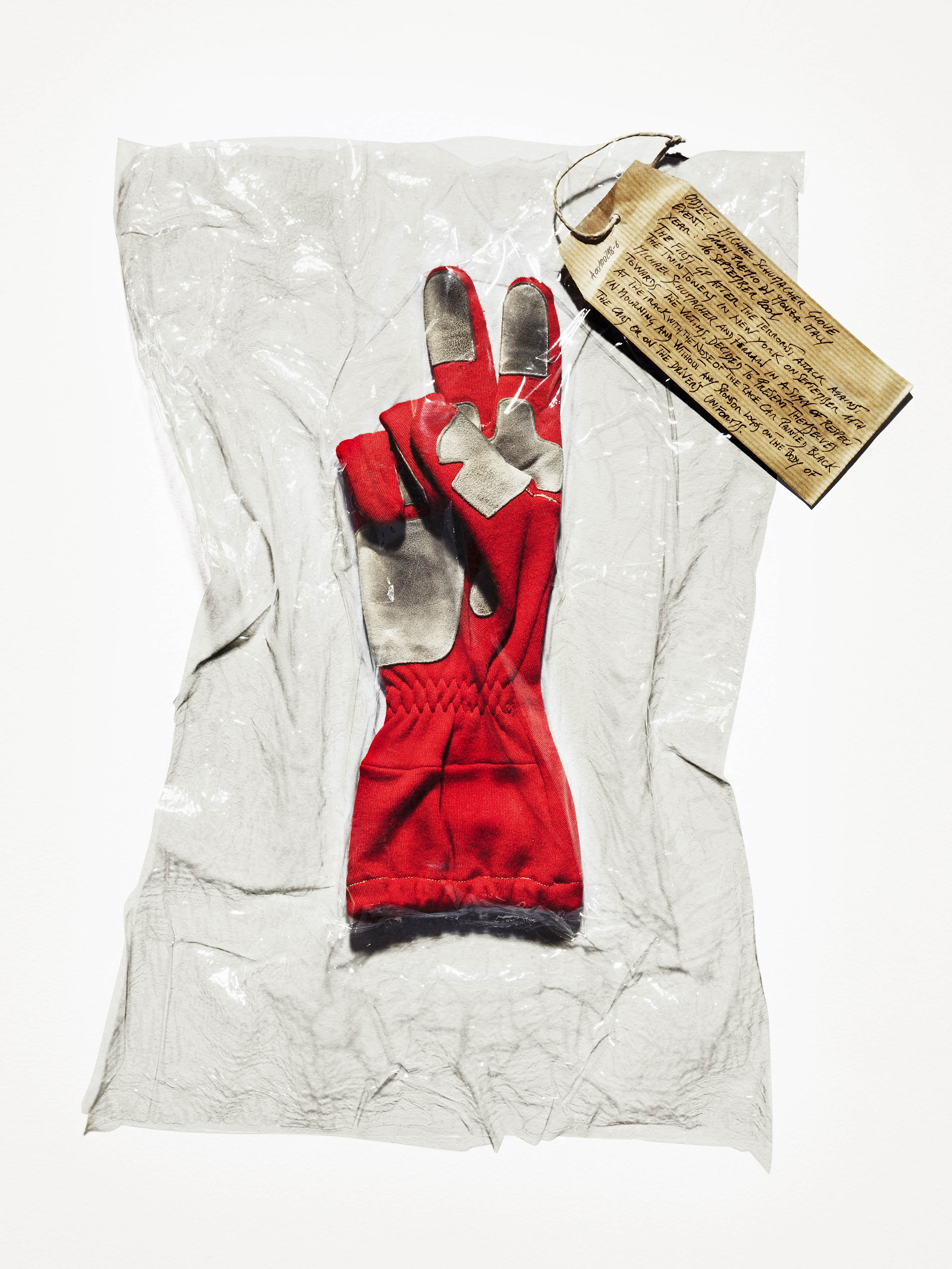Cimeli sportivi che diventano opere d’arte: l’ oggetto fotografato viene inserito in buste di plastica