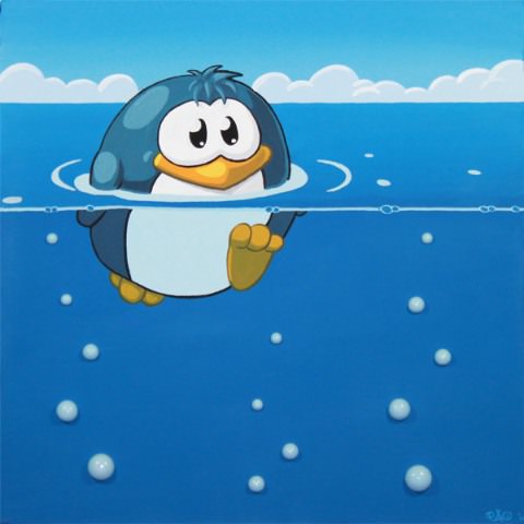 Ecco che vedremo un coccodrillo silenziosamente apparire dal pavimento, un pinguino-samurai a guardia della mostra e una generazione di coccinelle che terranno compagnia ad altri fantastici protagonisti di opere su tela, il tutto in un clima allegro e gioviale, onirico e surreale.