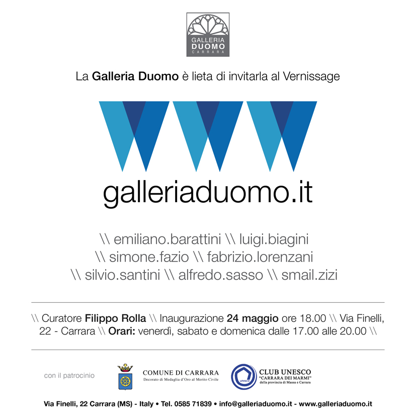 Inaugura sabato 24 maggio alle ore 18.00 presso la Galleria Duomo in Via Finelli 22 a Carrara la mostra collettiva dal titolo WWW.GALLERIADUOMO.IT curata da Filippo Rolla. La mostra vuole essere una presentazione al pubblico della collezione della Galleria ed un omaggio agli artisti presenti
