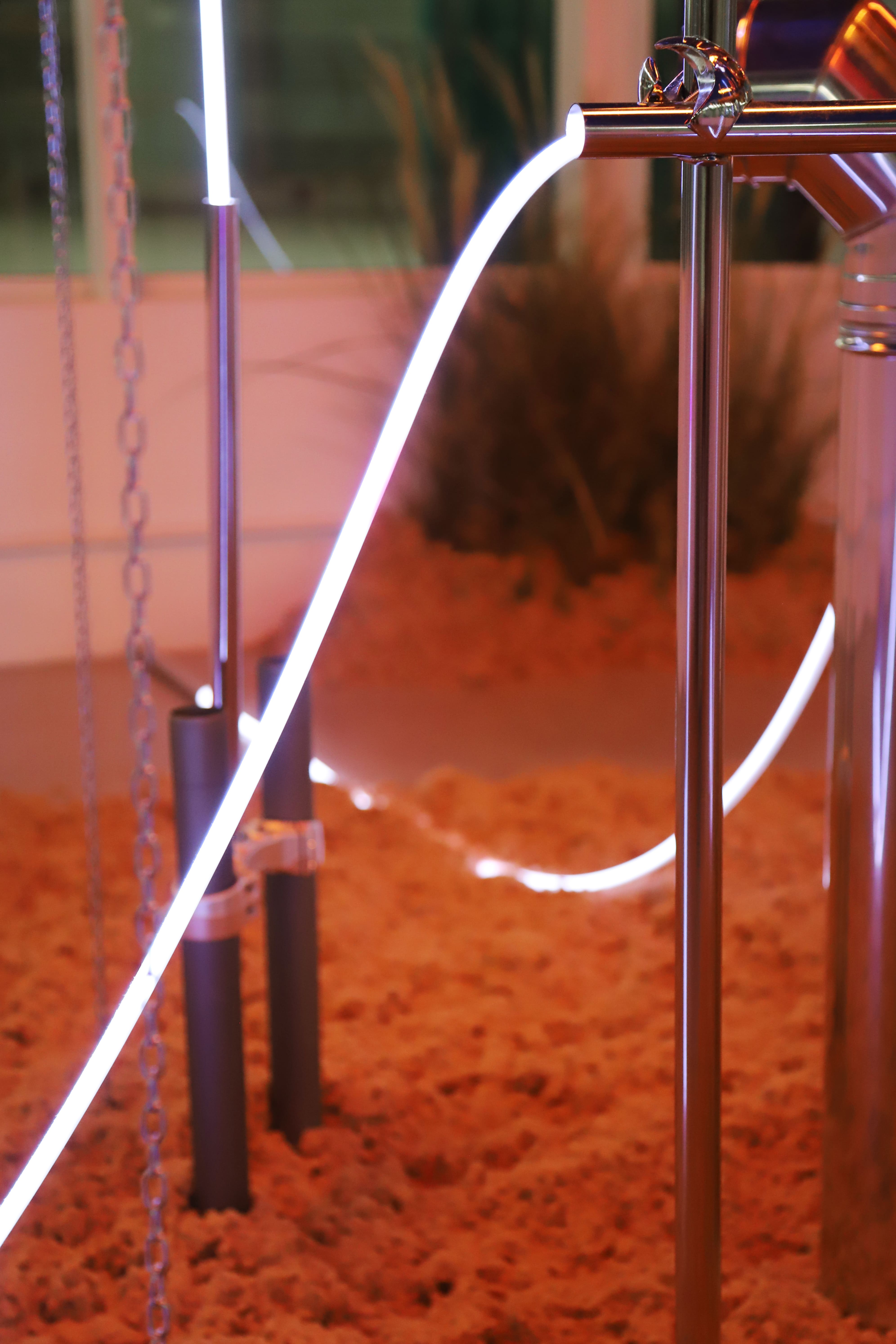 XAARCHIVE porta a spazioSERRA una finestra sul futuro, dove tecnologia e natura convivono in un equilibrio al contempo selvaggio e controllato. spazioSERRA ospita un ambiente sotterraneo percorso da tubi in cui elementi organici come terriccio, piante e altre forme di vita sono liberi di proliferare