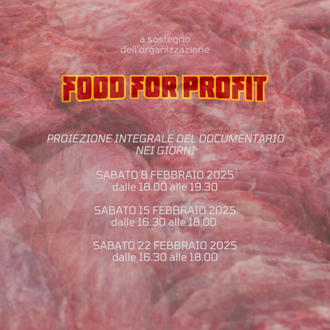 Durante il vernissage sarà proiettato il documentario di Giulia Innocenzi e Pablo D’ambrosi Food for Profit. L’esposizione sarà visitabile fino al 23 febbraio 2025 ad ingresso gratuito.