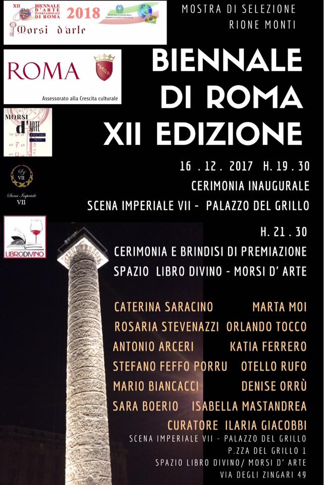 Morsi d’Arte in collaborazione con il CIAC - Centro Internazionale Artisti Contemporanei - e col patrocinio del Comune di ROMA - ASSESSORATO ALLA CRESCITA CULTURALE - presenta una collettiva che sarà una tappa di selezione per l’accesso alla finale della XII Biennale d’arte internazionale di Roma.