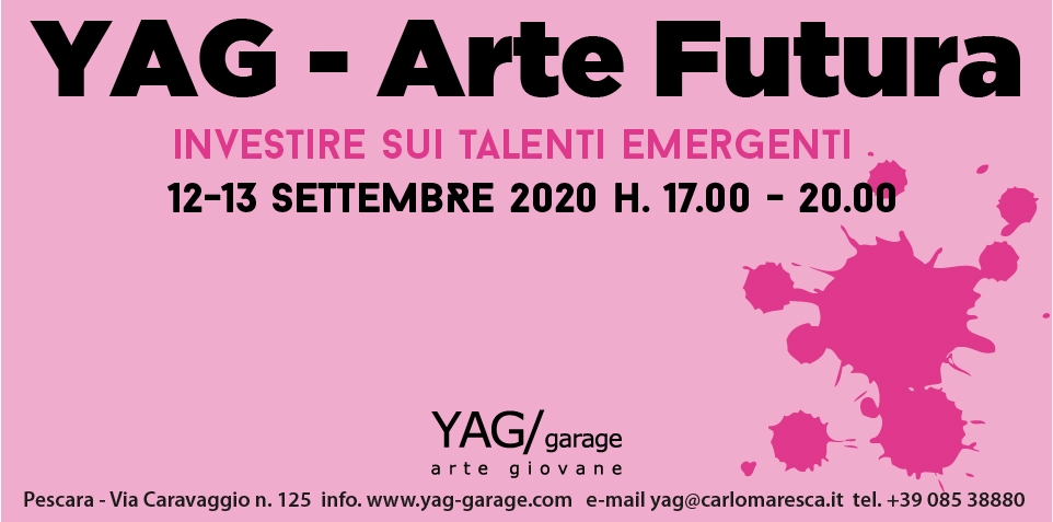 YAG - Arte Futura è il nome di una piccola fiera dedicata ad artisti emergenti. Si terrà a Pescara presso la YAG, in via Caravaggio n. 125, nelle giornate del 12 e del 13 settembre 2020, dalle 17.00 alle 20.00.