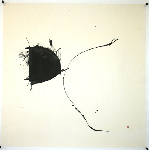 I seguaci dello Zeneisho di cui Hiroshi è autorevole esponente, praticano la calligrafia per educare il proprio spirito. Come sottolineato dalla studiosa Sato, si ispirano ai dettami di Lady Wei, calligrafa cinese del IV secolo che assimila la linea all’arto umano e cioè fatta di ossa, muscoli, carne e pelle. Scolpita in tre dimensioni, l’incisione del segno deve essere profonda e interagente con il bianco della carta. Più la linea è vitale più il bianco della carta appare caricato d’energia. La realizzazione segue un rituale simile alla performance; quando il calligrafo inizia non può bloccare il movimento nè avere esitazioni. Questo presupporrebbe un calcolo della mente che andrebbe a minare il senso di naturalezza, apportando quel blocco al flusso di energie che le rende inadeguate. L’artista non è più preoccupato di rendere immediatamente leggibile il testo a cui si ispira, ma piuttosto, è sensibile al rapporto che si instaura con la linea. Attraverso le infinite riscritture o prove, la forma diventa sempre più personale e il significato, originariamente scelto, va lentamente a perdersi. Questo esercizio, simile a un mantra ripetitivo, porta nel tempo a una consapevolezza maggiore così da far assorbire il significato autentico del carattere di partenza maniera più profonda.