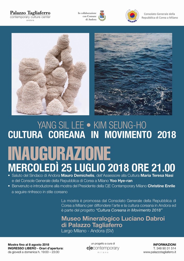 L’evento espositivo è programmato nel contesto dell’iniziativa culturale, promossa dal Consolato Generale della Repubblica di Corea a Milano, denominata “Cultura Coreana in Movimento 2018”, a cui l’Assessorato alla Cultura del Comune di Andora aderisce in una comune condivisione di intenti e stima reciproca dimostrata dalle frequenti visite ad Andora dei Consoli Generali della Repubblica di Corea a Milano.