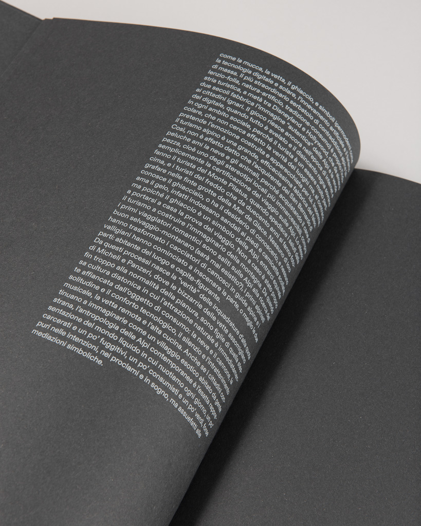 In tanti hanno fotografato le Alpi ricercando il naturalismo, il tradizionale, il selvaggio e il puro. Concetti che appartengono alla mitologia immaginaria della montagna molto più che alla sua attuale dimensione antropologica, fatta di contraddizioni e abitudini che somigliano dannatamente a quelle del mondo in pianura.