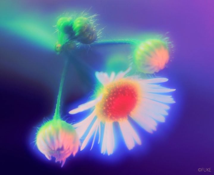 Il lavoro che l’artista digitale FUKE P-san riesce a produrre è una incantata visione del mondo immerso in un’anarchia cromatica ipnotizzante . FUKE P-san usa la macchina fotografica digitale per immortalare prevalentemente paesaggi e gli elementi della natura come fiori, acqua, neve ecc, questo fa di lui un fotografo paesaggista che sfrutta la luce naturale ( che poi modifica) dell’alba e del tramonto il che lo porta a lavorare prevalentemente fuori dallo studio fotografico . La bellezza dei suoi numerosi scatti è radicata nel colore ma se osservati attentamente ci si accorge che la composizione, la qualità della tecnica e la forma interagiscono tra di loro scatenando un forte impatto emotivo esaltato anche dalla luce artificiale .