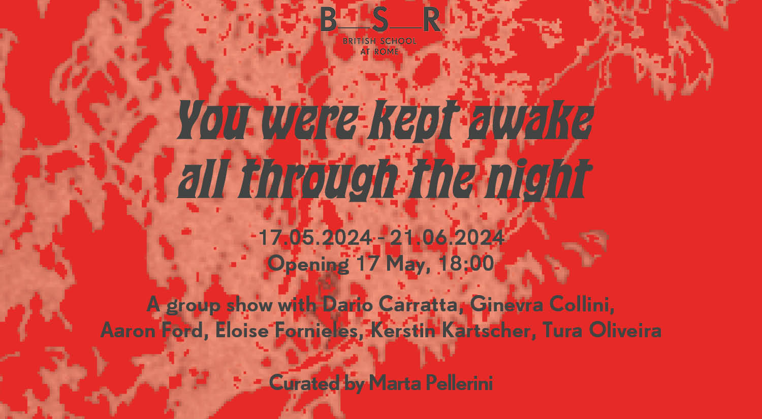 La mostra collettiva You were kept awake all through the night con gli artisti Dario Carratta, Ginevra Collini, Aaron Ford, Eloise Fornieles, Kerstin Kartscher, Tura Oliveira, a cura di Marta Pellerini, si terrà dal 17 maggio al 21 giugno 2024 presso la British School at Rome. L'inaugurazione della mostra si terrà il 17 maggio tra le 18.00 e le 20.30.