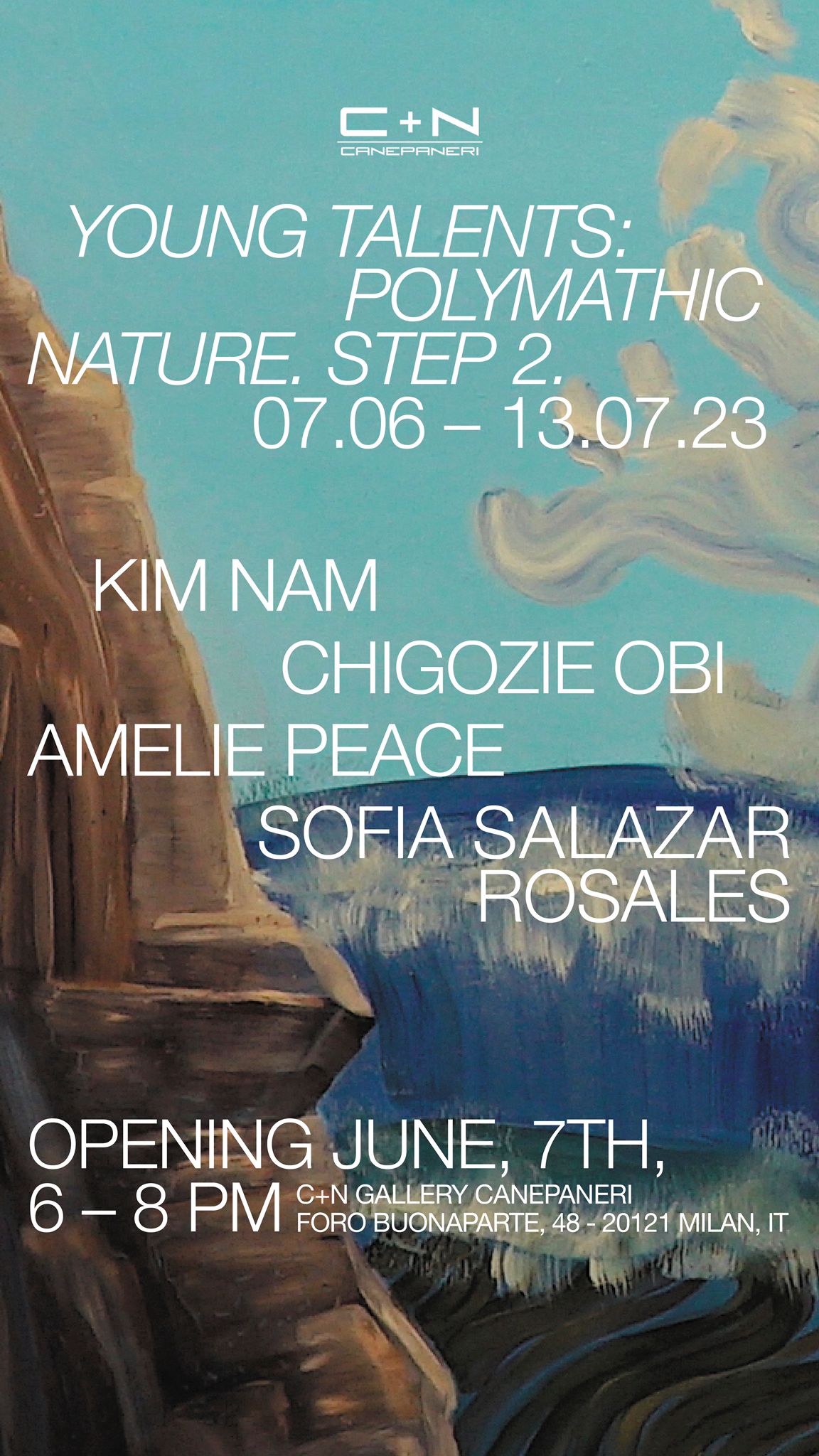 C+N Gallery CANEPANERI Mialno è lieta di presentare Young Talents: Polymathic Nature. Step 2, la seconda tappa della rassegna collettiva con una selezione di opere inedite di quattro giovani artiste internazionali Kim Nam, Chigozie Obi, Amelie Peace (dipinti) e Sofia Salazar Rosales (sculture). Il titolo vuole porre l'attenzione sulla natura poliedrica dell'espressione artistica, dove la "corporeità" e il "dialogo" rimangono aspetti centrali in tutte le opere in mostra.