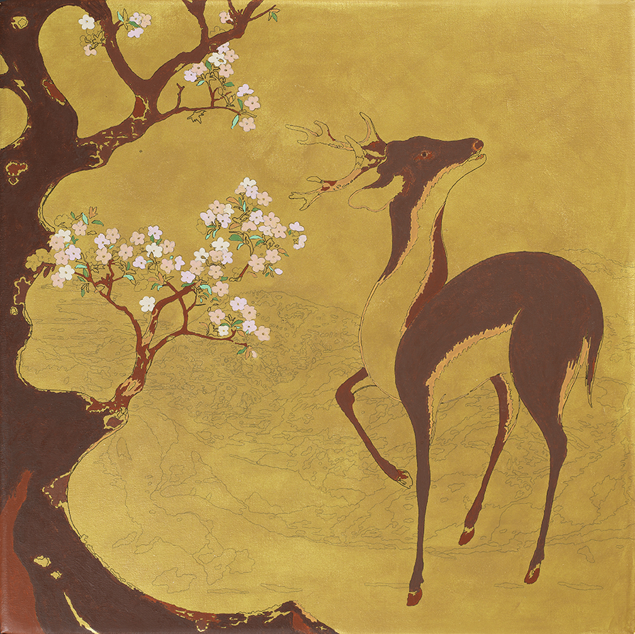 La nuova serie di dipinti ‘Learning from the past’ è ispirata all'arte giapponese del periodo Edo in una originale combinazione con l'essenza dell'arte medievale europea. Durante la sua lunga permanenza in Italia, Yumi Karasumaru ha superato nella sua ricerca i confini culturali tra Oriente e Occidente e nella sua riflessione estetica ha fuso e purificato diversi elementi raccolti nella storia dell’arte trasformandoli in forme nuove.