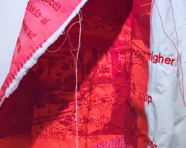 tecnica mista su tessuto come “Serpentine,” 2025, “Fudoki”, 2025“, The Changeling “, 2025 e “Ode to a Nightingale” 2025 serigrafie e tessiture a mano con cornice.