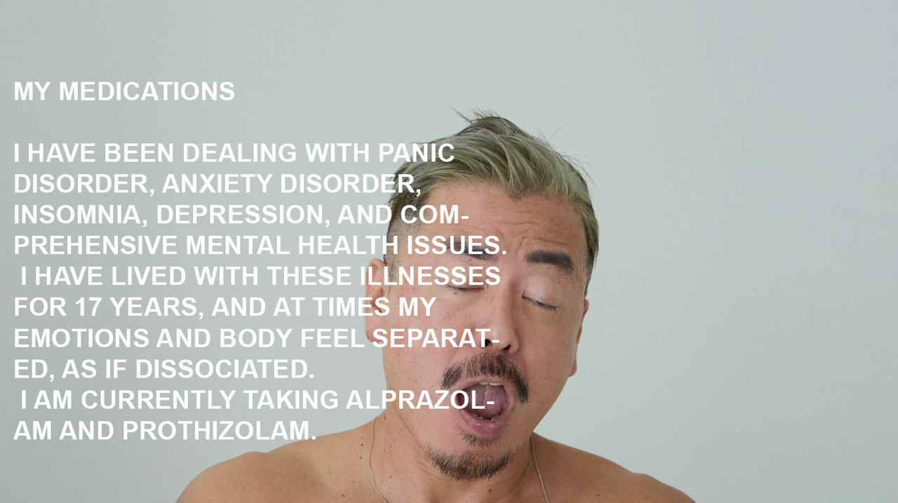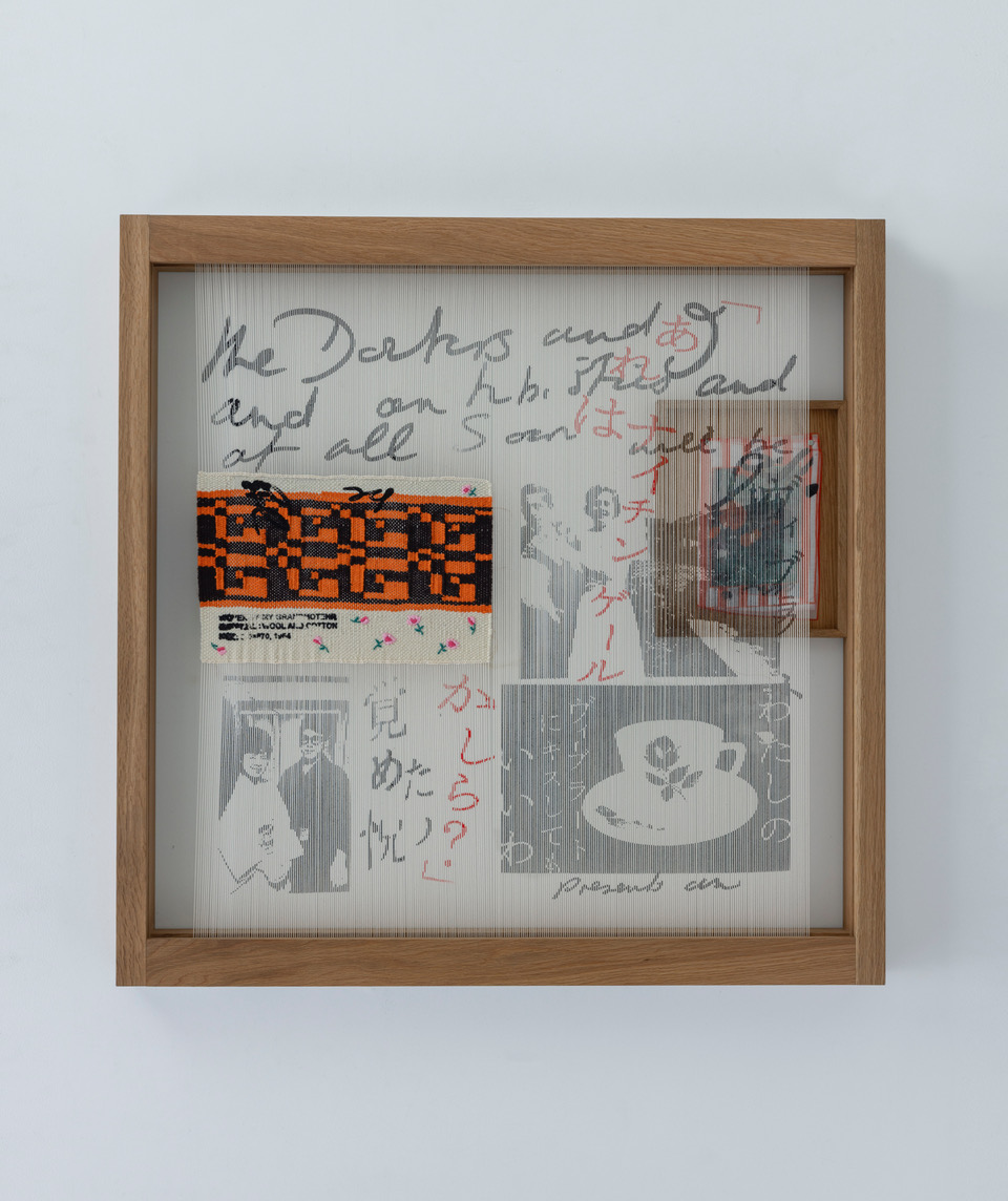Spaziando dalla pittura al disegno, dalla fotografia al suono e dalla poesia ai tessuti (ricami), fino alle installazione site-specific Hakama, Haori, Kokoro/Inside ,from “Demolition_Purification_Love_Magic “ del 2022 , silk-screen print e ricamo a mano su tessuto ,e alla video installazione “ Necromancy”2022, contestualizza le pratiche portate avanti dagli artisti nella genealogia delle espressioni d’avanguardia del Giappone, generando dialoghi a più livelli tra le opere espo-ste e la riflessione sul sé che cambia, un misto di realtà e immaginazione, basato sul suo amore feticista per i tessili, -soglia semantica in quanto tale–diventata il fulcro del suo lavoro. In mostra da Amy d Arte Spazio Milano video della serie “Mie/My face up to age 48”,2025 “, Simulacrum_Sensuous”2025, video e installazione con Utsuwa, 7 monitor, stampe serigrafiche in seta, ricami e cuciti a mano su cotoni serie “Talisman” del 2019, pitture e
