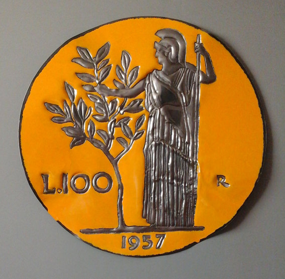 La Costantini Art Gallery inaugura giovedì 11 settembre 2014 la mostra personale di Yuri Olegovic dal titolo “La lira pesante”, con una serie di opere scultoree raffiguranti le ultime lire da conio.