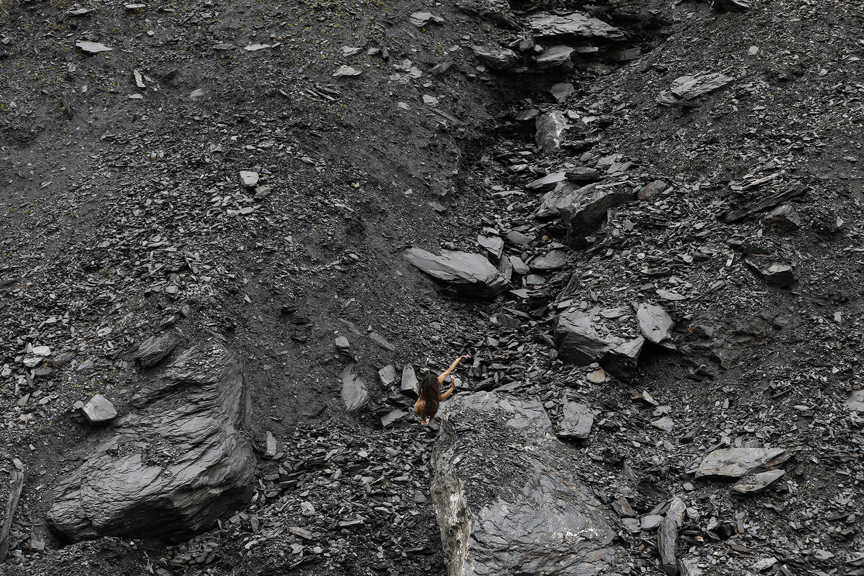 Nella prima installazione, FOREIGN BODIES, il corpo umano viene raffigurato come elemento intrusivo ed estraneo a una natura utopica. Sette ballerine professioniste, provenienti da corpi di ballo di rinomati centri teatrali internazionali quali La Scala, Bejart e Shan-Wei, compaiono in sette proiezioni video parallele, filmate e dirette dall’artista in numerose scene girate in più di trenta luoghi della Valle con il supporto di due esperte guide alpine locali. Le loro trasformazioni in organismi tremanti incarnano metafore corporali del desiderio di riconnettersi con la natura e dell’inevitabile distanza da essa, apparendo come figure sole, animalesche e meccaniche, mimetizzate e disturbanti allo stesso tempo. Il quadro, comprendente oltre sette ore di filmati, è completato da una partitura elettronica polifonica di più di 90 minuti composta da registrazioni di suoni provenienti dalla Valle, elaborati e distorti.