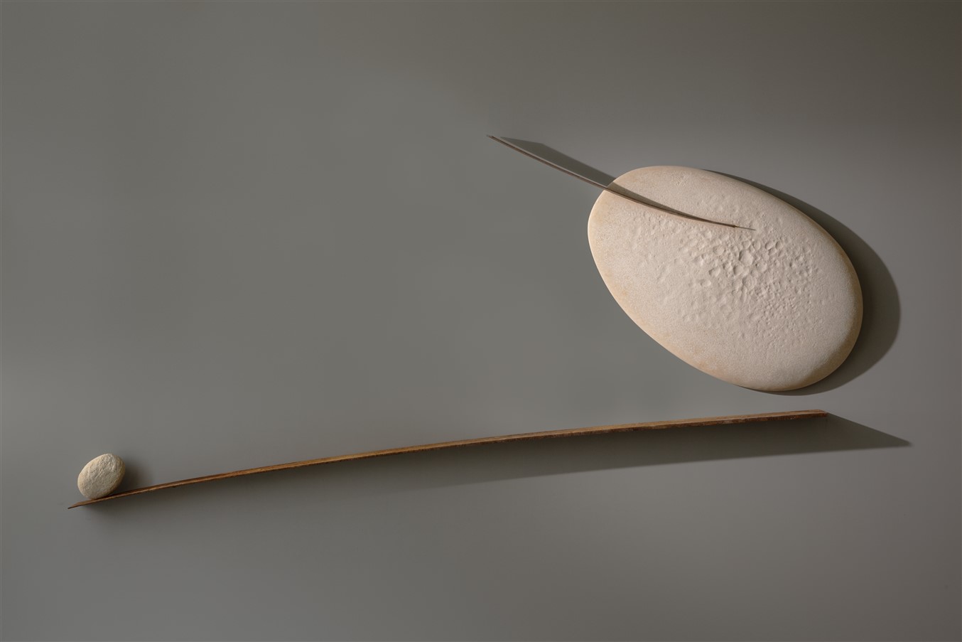 L’artista stesso ci guida alla comprensione: “ Così, includo forme di erosione, crepe, piccole fessure.. La materia non è eterna, è anche soggetta a questo grande ciclo del tempo, come un sasso che porta segni, tracce e, nonostante la perfezione di essere stato girato e rigirato dall'acqua per milioni di anni, ci racconta il suo passato “.