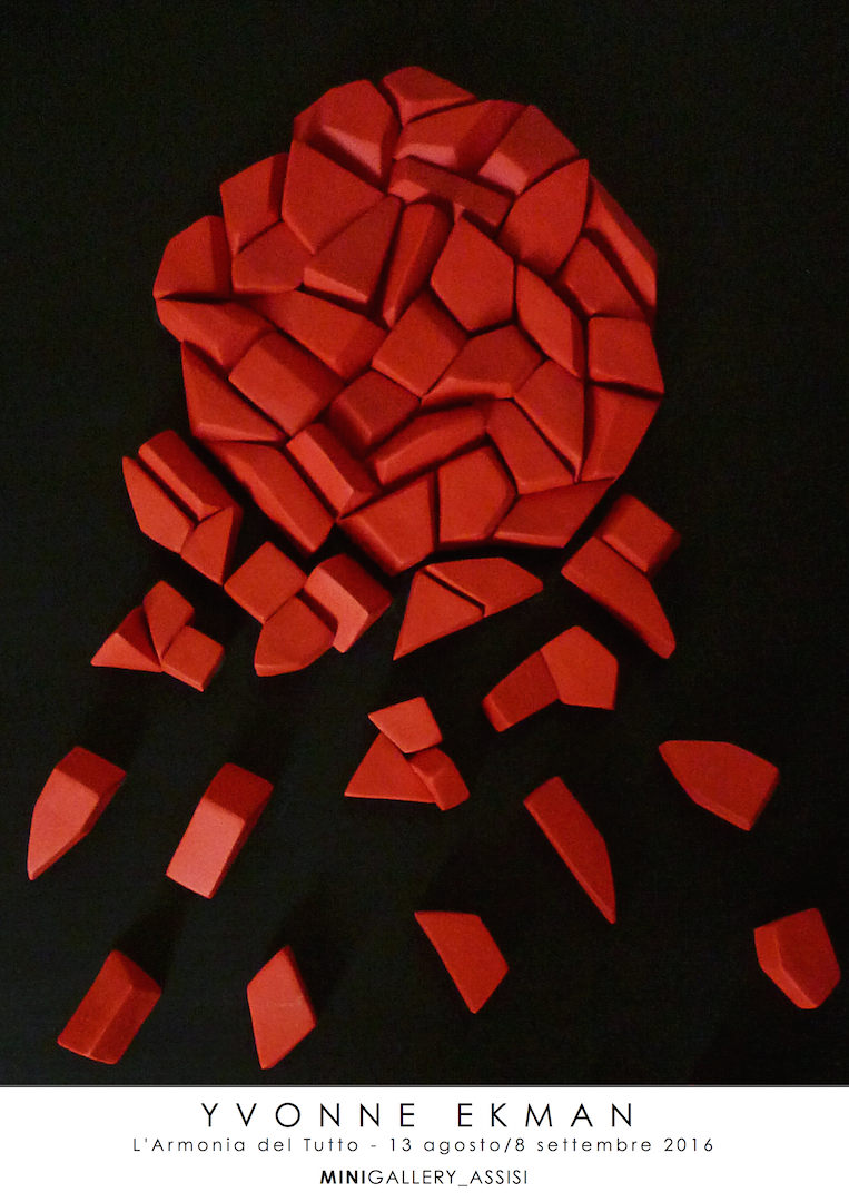 Nelle opere di Yvonne Ekman lo spessore delle forme non è omogeneo ma varia leggermente, degradando dal centro della composizione dove queste si assiepano per diminuire mentre ci si allontana dal centro. Sono variazioni lievi, di un semitono, potremmo quasi dire se volessimo utilizzare una metafora musicale. E così pure la disposizione degli elementi, che segue percorsi arcani, a forma di spirale, talvolta, o lungo assi ottici più complessi da rintracciare con attenzione dietro l'apparente semplicità ricercata dall'artista. Nelle opere più recenti come nella ricerca degli anni addietro è quasi sempre il tutto, l'insieme, ad essere oggetto della sua attenzione […].
