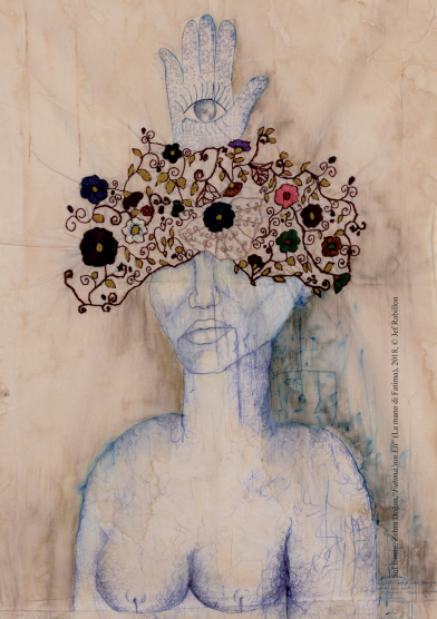 Una prima sezione della mostra è dedicata alle macchie, forme generatesi dalla casuale sovrapposizione di materiale a un supporto scelto in quel momento come superficie creativa. A partire dalle macchie l’artista delinea un immaginario simbolico, dominato dalla figura umana sintetizzata nell’esaltazione di alcune componenti specifiche come gli occhi, le mani e gli attributi della femminilità. La figura femminile, quale singolo individuale o corpo collettivo, costituisce la seconda sezione di questo itinerario. Attivista femminista, tra i primi giornalisti internazionali ad avere raccolto le testimonianze delle donne Yazide scampate all’ISIS, Doğan dedica alla rappresentazione della donna la parte più vasta della propria produzione.