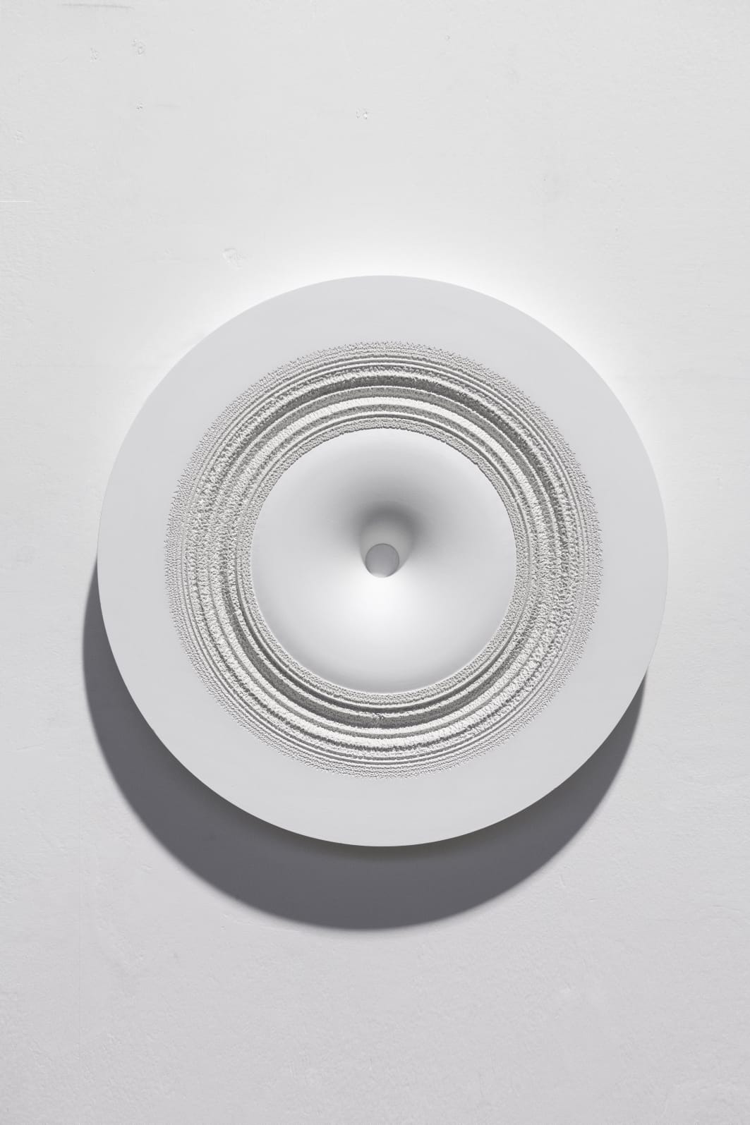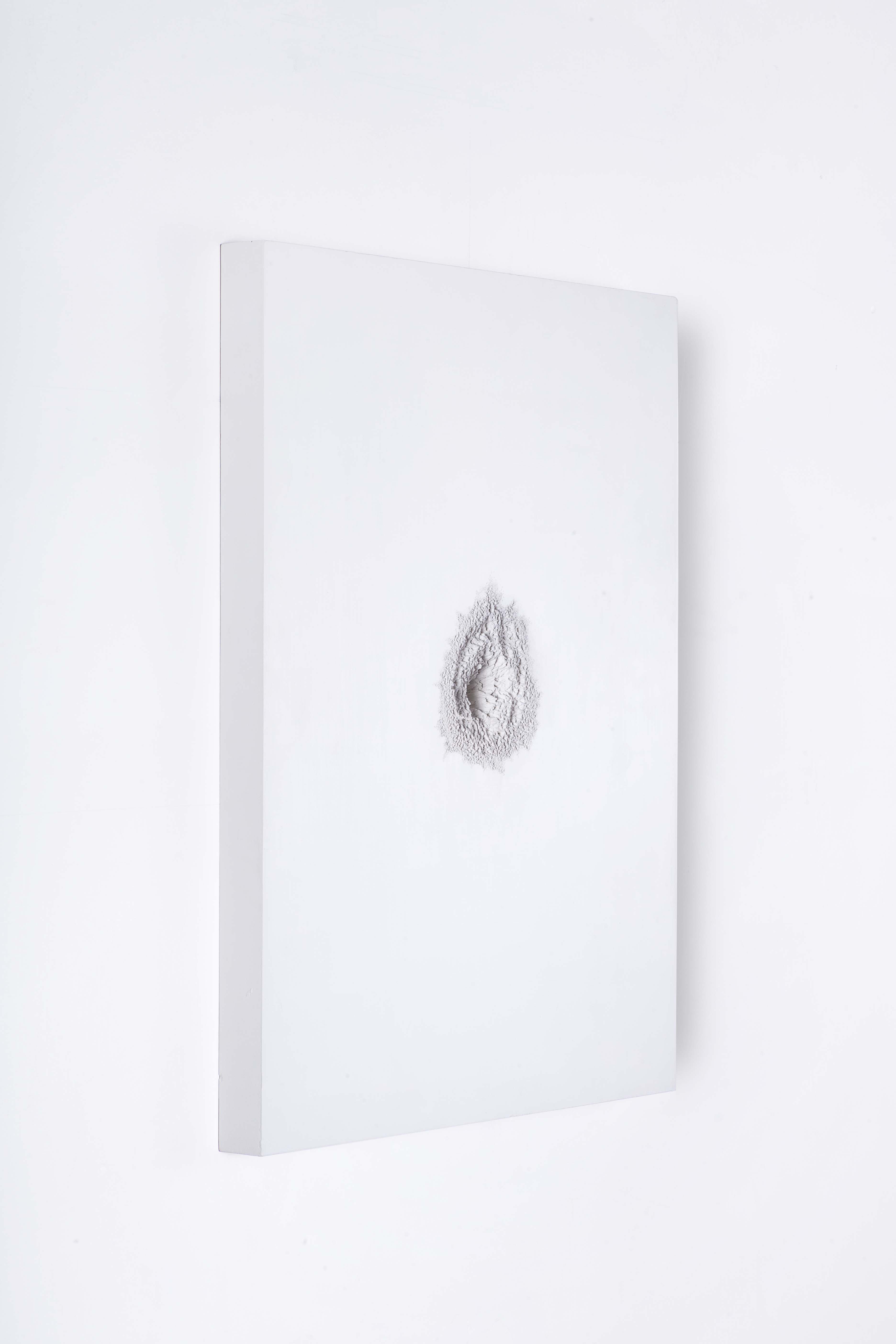 “Trame silenziose” presenta 32 sculture realizzate prevalentemente in gesso e ceramica. Bertozzi opera su una sorta di tatuaggio plastico ottenendo effetti che stanno tra la calcificazione ossea e concrezioni della più diversa natura, dalle quali scaturisce una riflessione su un tempo che può alterare e variare superfici eterne per la loro classica bellezza. Sotto il segno della metamorfosi, questo tipo di intervento, minuziosamente eseguito con la punta fine di un bulino, viene ripetuto su varie superfici sempre di materiale ceramico e gesso. Una ripetizione costante, che include sempre la dimensione del tempo, attraverso una lenta contemplazione che plasma la materia, creando crateri e forme che si trasformano nell’unità di misura dell’invisibile scorrere del tempo.