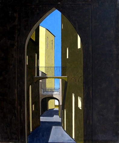 Le tele del primo periodo vedono come protagonisti i paesaggi di luoghi legati al mondo della sua infanzia, ma traslati in un’atmosfera sospesa carica di silenzio, dove l’assenza dell’uomo lascia lo spazio ad un’assoluta introspezione metafisica, ampliata ancora di più nel ciclo di opere Elevazioni.