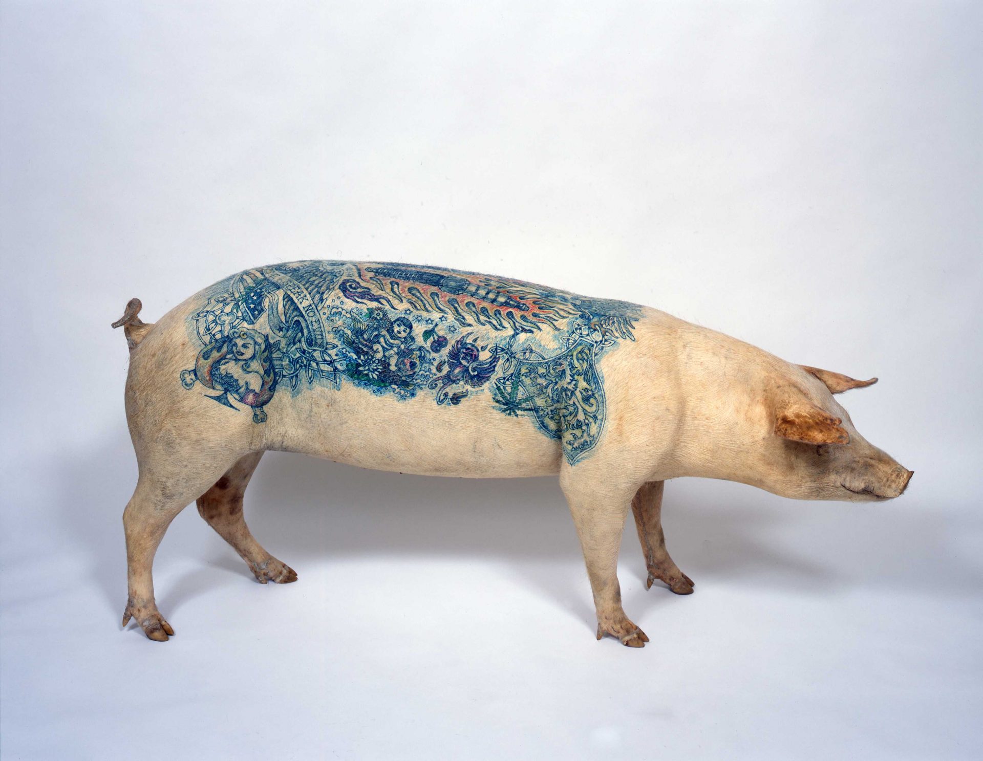 Quanto a Wim Delvoye (1965) è noto per le sue immagini dissacranti e surreali. Ha tatuato grandi maiali che hanno portato fino alla morte, avvenuta naturalmente, le sue geniali decorazioni. Uno spirito sarcastico e provocatorio, tipico della tradizione fiamminga da cui proviene.