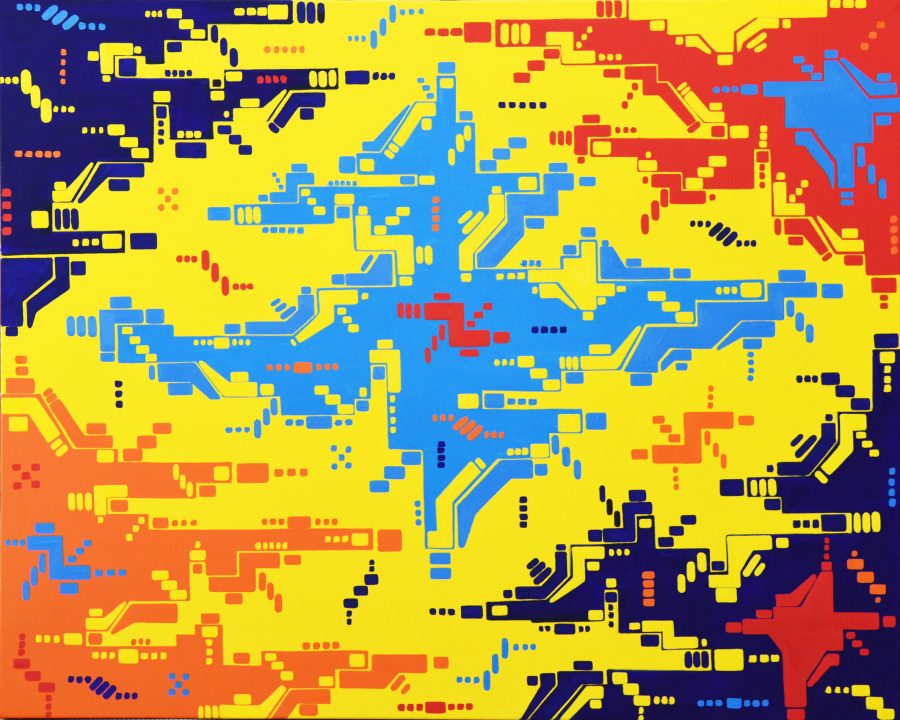 Nei miei lavori, che si ispirano alle interferenze televisive o a delle distorsioni digitali, le figure che vi compaiono sono distorte, come se la tecnologia potesse cancellare la nostra storia, il nostro passato, la nostra memoria, forse la nostra stessa umanità.