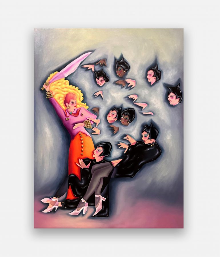 Ho accumulato negli anni un mio archivio, un atlas dove colleziono immagini di cinema, moda e musica vintage, ed i miei lavori si basano proprio sulla rielaborazione di quell’estetica attraverso il filtro della rappresentazione pittorica.