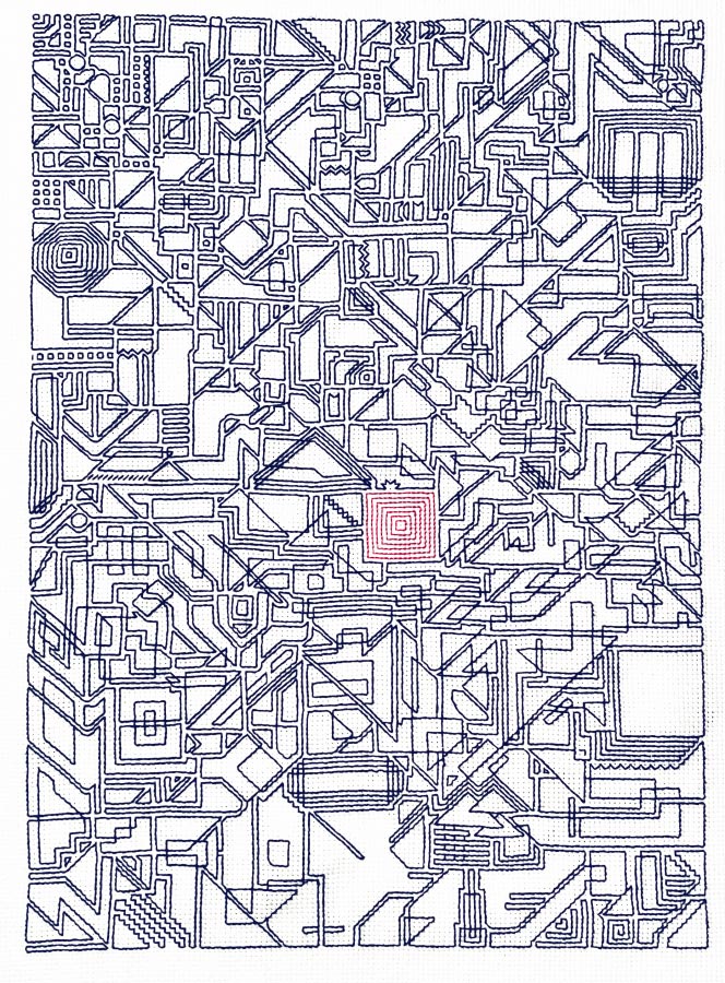Le stratificazioni del mio subconscio hanno fatto il resto, ho iniziato a ricamare con una tecnica e un immaginario non convenzionale, influenzata dall’architettura e dalla geometria.