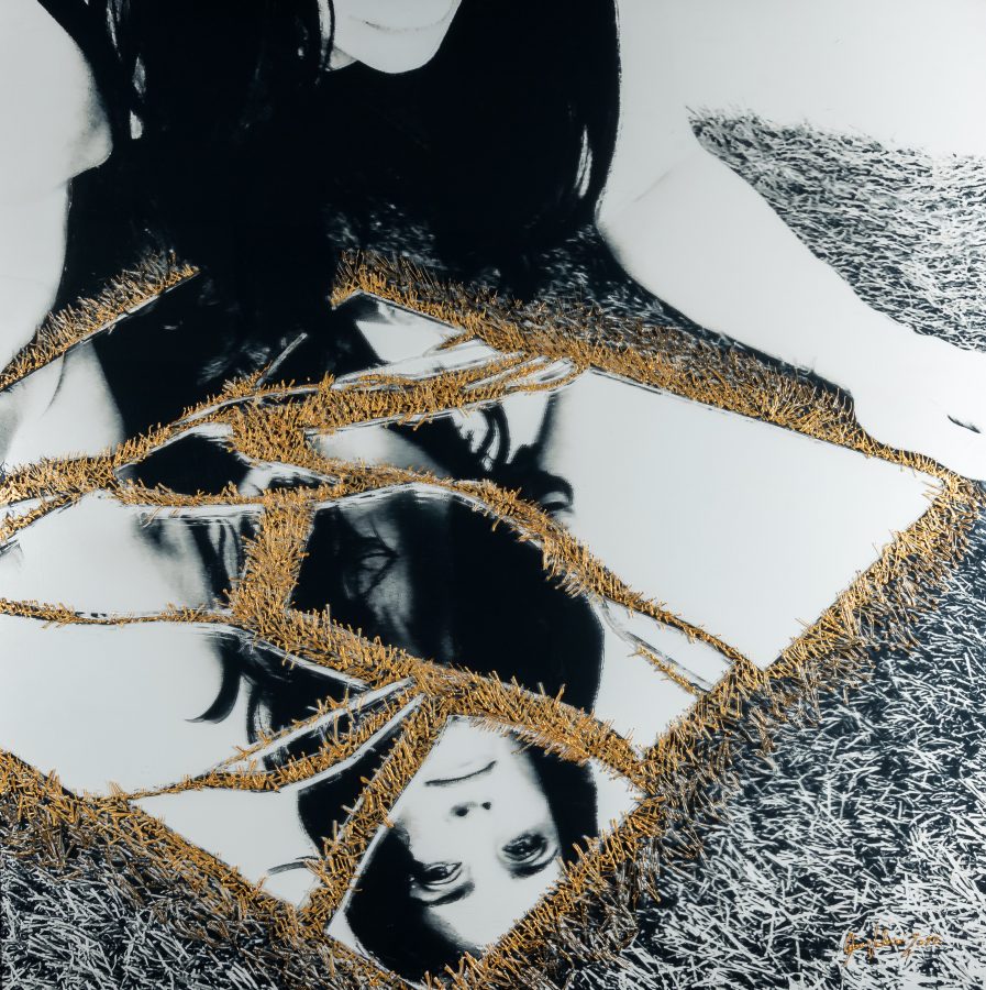 All’inizio utilizzavo solo tela, acrilici e inchiostro, ma poi ho iniziato a sperimentare nuove tecniche e nuovi supporti, come il plexiglass, il forex e il dibond. Ultimamente ho aggiunto la fotografia – e a volte anche il video – come un ulteriore strumento espressivo e compositivo. Lo scatto è per me un nuovo stratagemma creativo che permette di bloccare, ridefinire e ricomporre il momento nell’immediato, sul quale intervengo con la pittura per esaltare i dettagli e restituire un’anima all’immagine mediante la materia viva dei colori, soprattutto attraverso l’unicità dell’oro, che diventa una costante amica e impreziosisce e rimanda la mente ad un tempo passato che amo rivivere nei miei quadri.