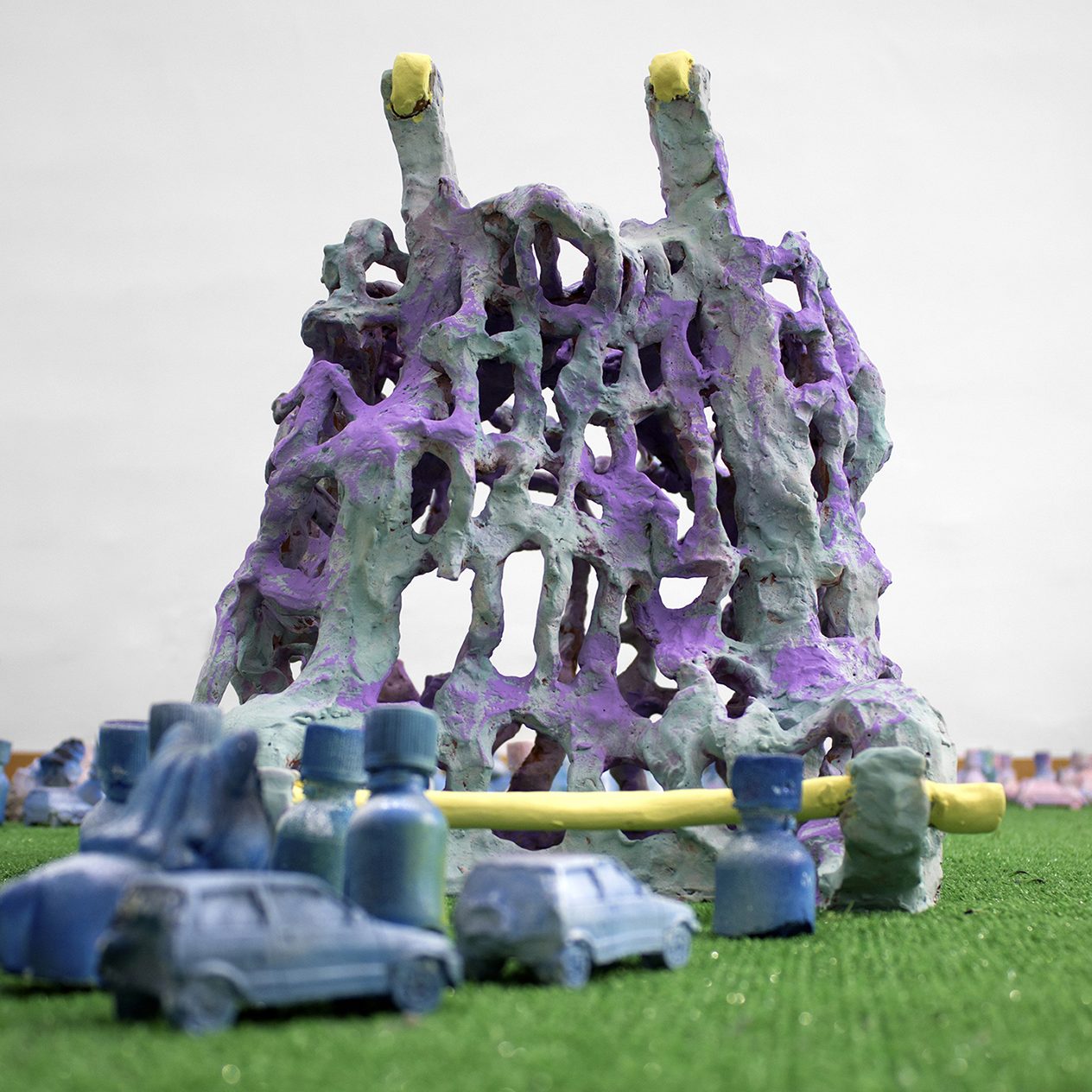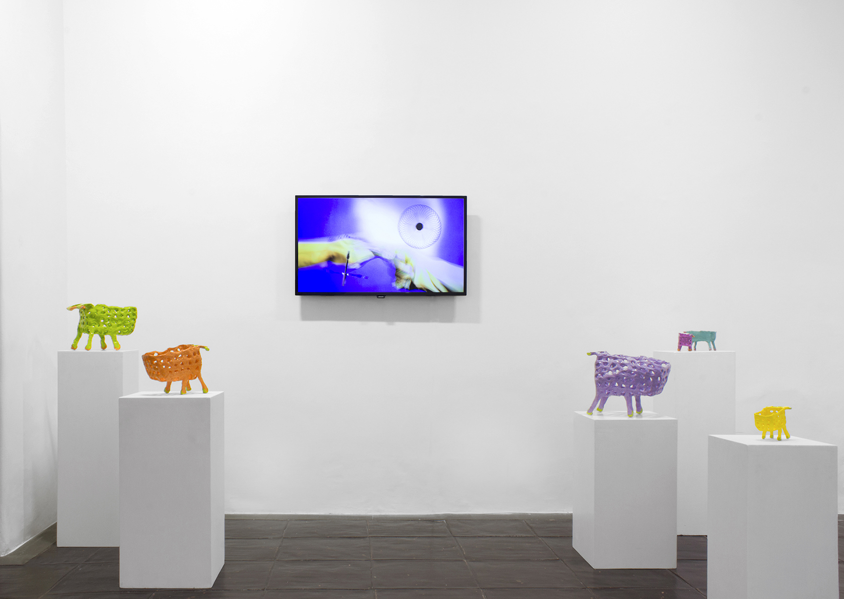 Infine Ricreazione, mostra nello spazio di Osservatorio Futura. Erba sintetica, cemento, suoni, sculture di ceramica e gesso creano una immagine di un playground. Ci sono giochi con i quali i bambini diventano adepti obbedienti di una adultità fatta di obblighi e illusioni. La ricreazione dovrebbe essere spensieratezza, sospensione delle attività lavorative, socializzazione. Tuttavia gli spazi di aggregazione spontanea e tempo libero sono erosi dai luoghi di consumo compulsivo, palestre di produttività. Così nasce la serie Checkout: il carrello della spesa, icona degli acquisti online, diventa feticcio, come feticcio è la merce che contiene. È rovina votiva e materia preziosa».