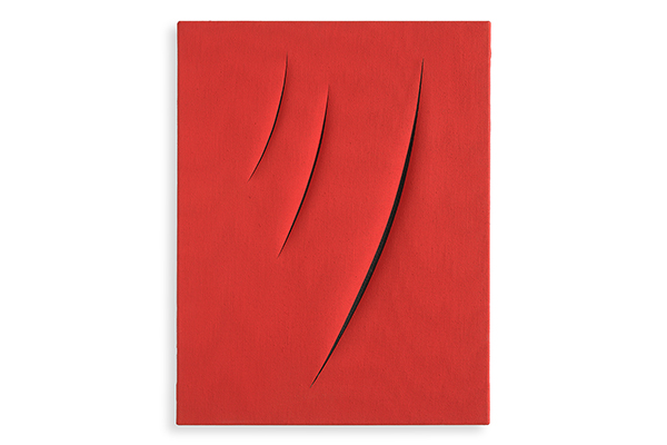 In Fontana, nei suoi splendidi Ambienti spaziali e nei suoi celebri tagli e buchi, a partire dagli ultimi anni ‘40, una essenzialità netta, pulita, radicale, in profondi e minimi gesti che hanno sposato il motto preferito da Ludwig Mies van der Rohe: Less is more: il meno è il più. Una felice, elegante riduzione a conquistare un maggiore spazio e una più alta luce. Secondo le lucidissime parole di Melotti, “Il “taglio” di Fontana è l’emblematico bisogno di uscire dalla giungla informale”.