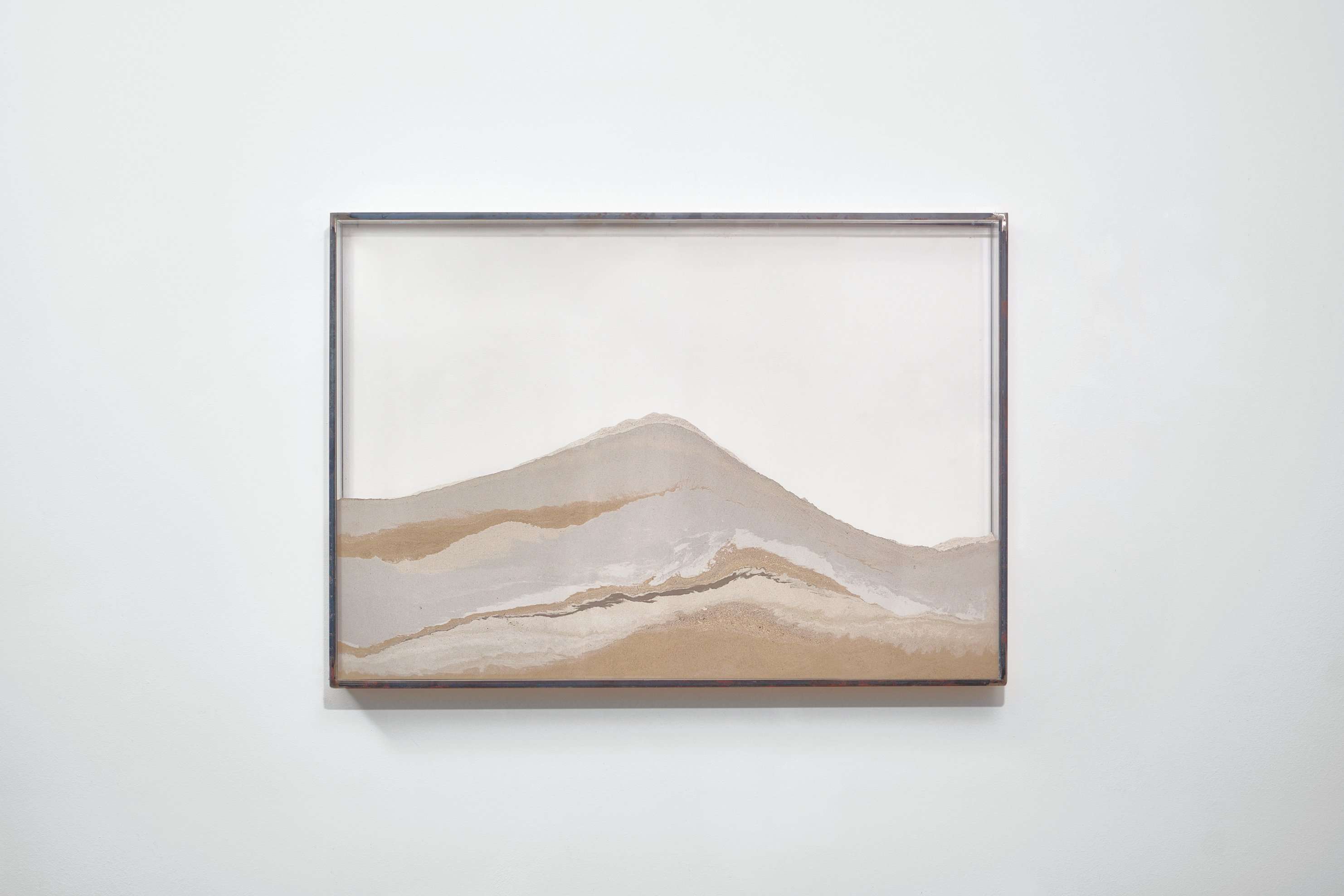 • Elisabetta Novello, Paesaggi, 2024 Cenere carbone, teca in plexiglas, ferro 70×100 x10 cm