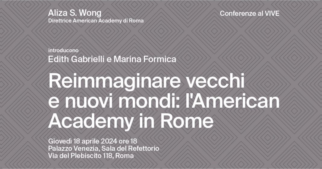 La conferenza dal titolo “Reimmaginare vecchi e nuovi mondi: l’American Academy in Rome” si inserisce nel ciclo di incontri “Una capitale internazionale: Roma e gli stranieri” curati da Marina Formica, professoressa ordinaria di Storia Moderna, Università di Roma Tor Vergata. L’evento si concentrerà sul ruolo dell’American Academy in Rome nell’accogliere pensatori e creativi delle arti e delle discipline umanistiche che hanno trovato ispirazione e innovazione nella Città Eterna. L’incontro ospiterà l’intervento di Aliza S. Wong, attuale direttrice dell’American Academy in Rome e docente di storia, direttrice di studi europei e preside ad interim dell’Honors College della Texas Tech University di Lubbock.