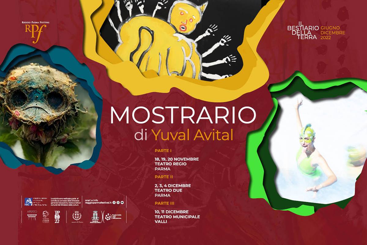 Dal 18 novembre fino all’11 dicembre sarà possibile partecipare ai tre weekend del Mostrario di Yuval Avital, imponente opera multidisciplinare in tre parti, che trasforma completamente i principali teatri di Parma e Reggio Emilia – a Parma il Teatro Regio (18, 19 e 20 novembre) e il Teatro Due (2, 3 e 4 dicembre), a Reggio Emilia il Teatro Municipale Valli (10 e 11 dicembre) – in spazi onirici, espositivi e performativi, e porta a compimento “Il Bestiario della Terra”, il grande progetto realizzato dal Reggio Parma Festival. Grazie allo straordinario lavoro corale dei teatri, con il coinvolgimento di tutte le maestranze e di molte realtà creative dei territori, si ha l’occasione di vivere un vero e proprio ‘alveare di creatività’, con attori, danzatori, cantanti, musicisti e burattinai al lavoro insieme per dar vita a un atto poetico forte, coraggioso, rivoluzionario.