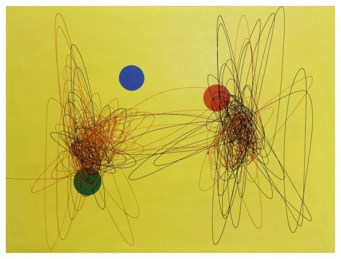 La galleria propone anche la scultura surreale L’oiseau amoreux di Niki de Saint Phalle (pezzo unico) che in una piazza di Oslo campeggia in formato gigante; e uno dei lavori più completi dell’artista sarda Maria Lai, in legno, ceramica, pittura, ramo e filo. (Artenetwork Orler, Venezia)