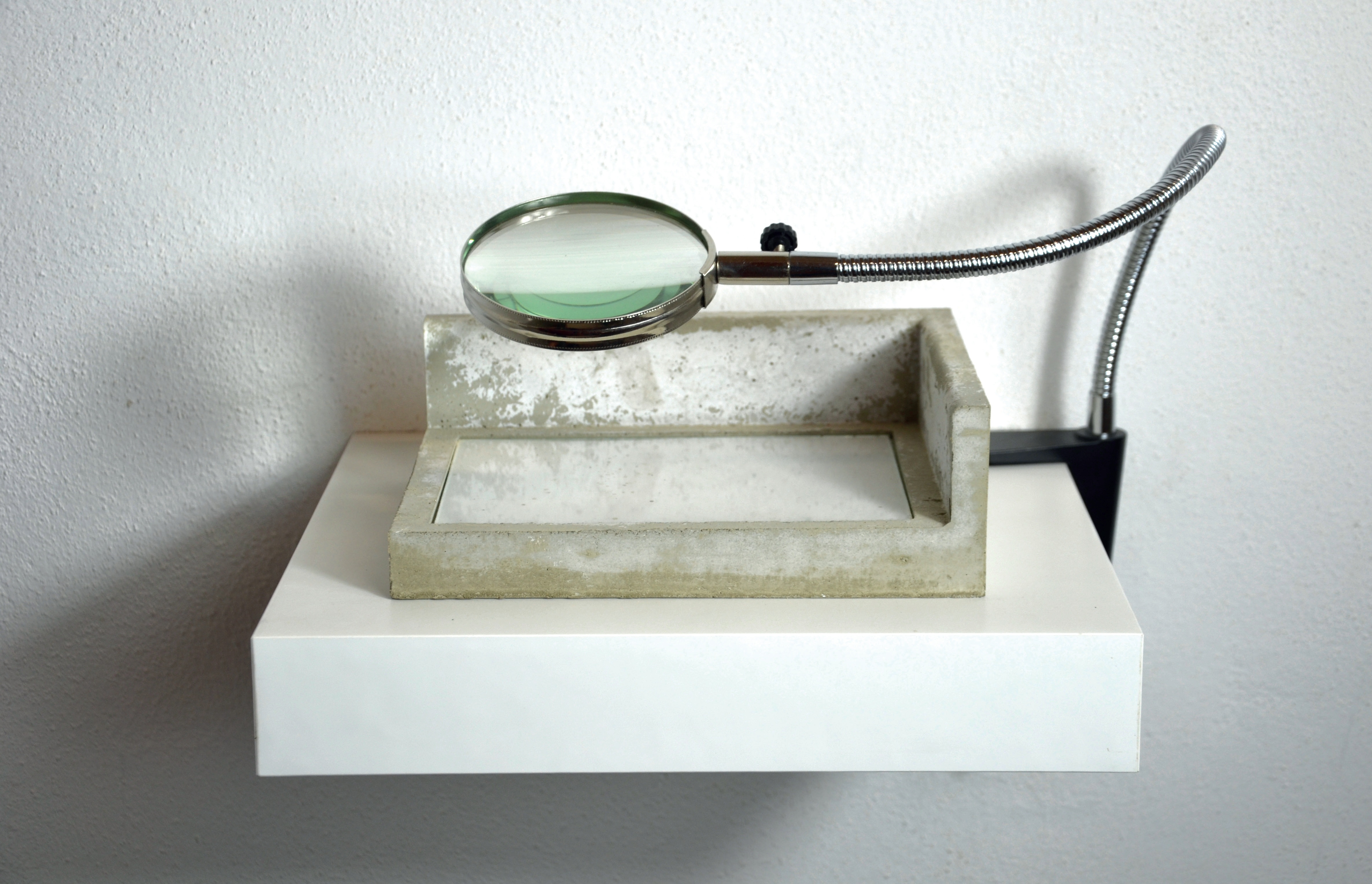 - Iacopo Pinelli, Alterazioni spaziali, dimensioni variabili, cemento, metallo, vetro, lente d’ingrandimento, carta, matriale organico, 2025