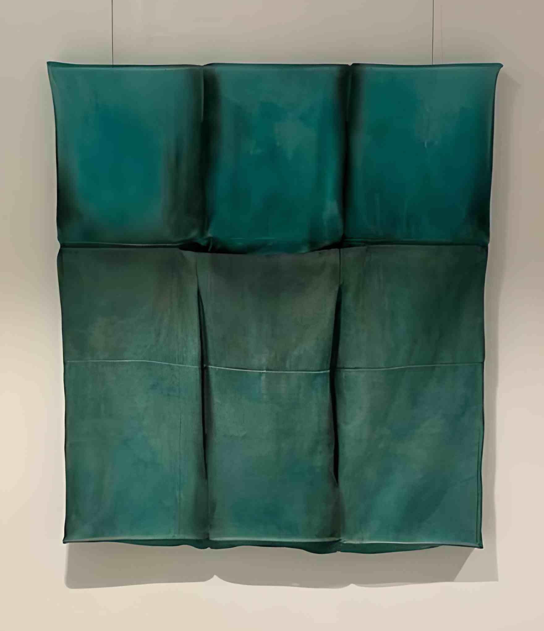 2) Jaime Poblete, Untitled, 2021, Pigmenti, sale, resina acrilica su tessuto piegato e cucito,126x112x6 cm