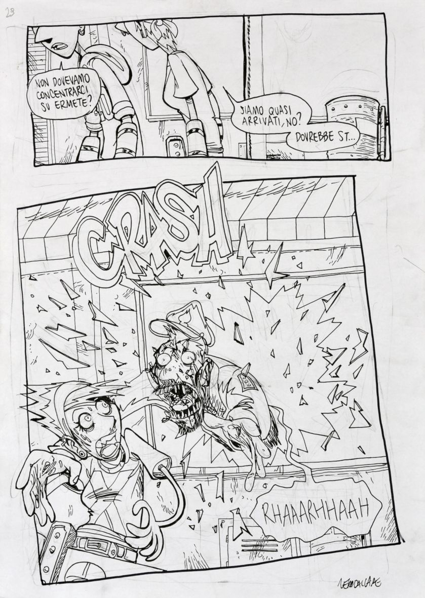 Attesa la presenza di Zerocalcare che partecipa alla vendita con “Dodici, pagina 29” (lotto n.140, stima: €800-1.200) del 2013, nel quale racconta le vicende dello stesso Zerocalcare e dei suoi amici alle prese con un’invasione di zombie nel quartiere di Rebibbia.
