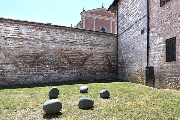 “Artificio naturale”, realizzata nel 2011, è composta da cinque massi in pietra, semplicemente adagiati a terra. Lo scultore ha inizialmente modellato in argilla una pietra “ideale”, levigandola fino a farla sembrare un sasso perfetto, come se fosse stato plasmato dall’acqua di un torrente. Da questa forma originale sono stati creati cinque esemplari in gesso, poi in cemento, e infine, grazie a una scansione 3D, sono stati scolpiti in pietra di Matraia. Pur avendo la stessa forma, i cinque massi appaiono diversi in quanto posti in cinque posizioni differenti, le uniche in cui stanno in equilibrio.